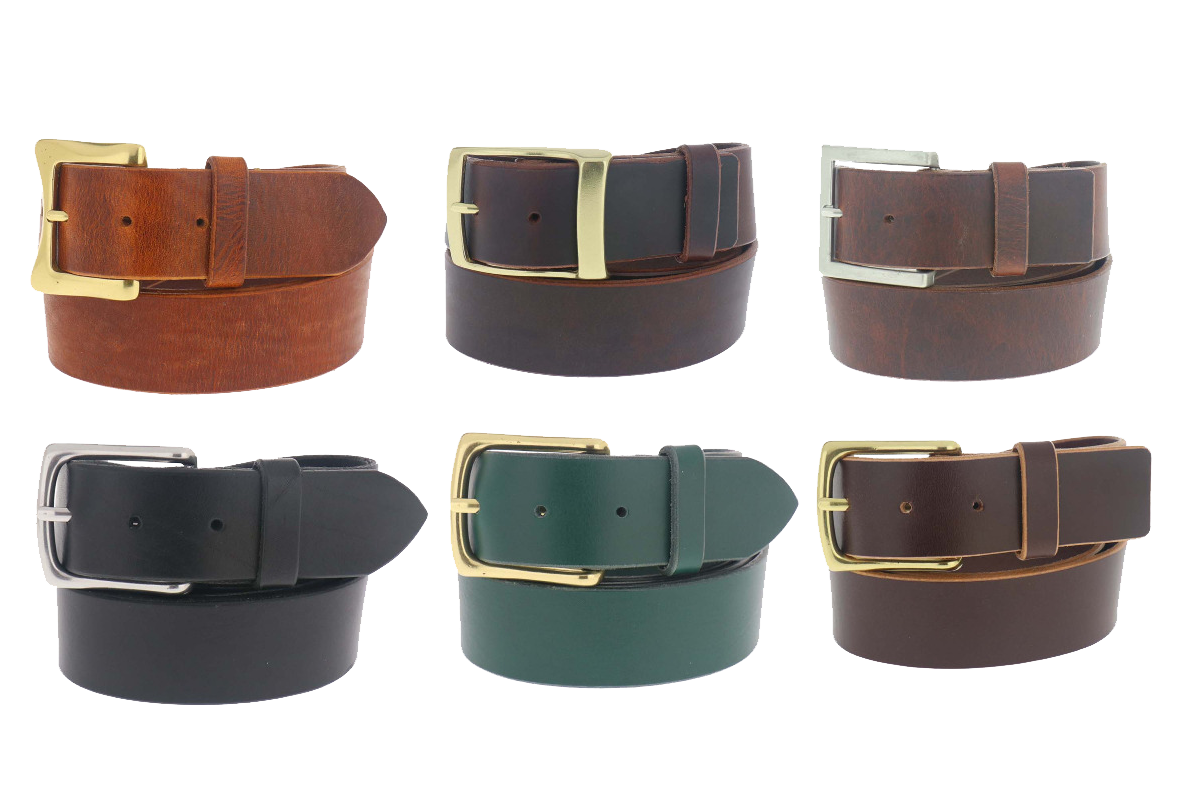 1" (25mm) Brown Leather Belt Gold Buckle