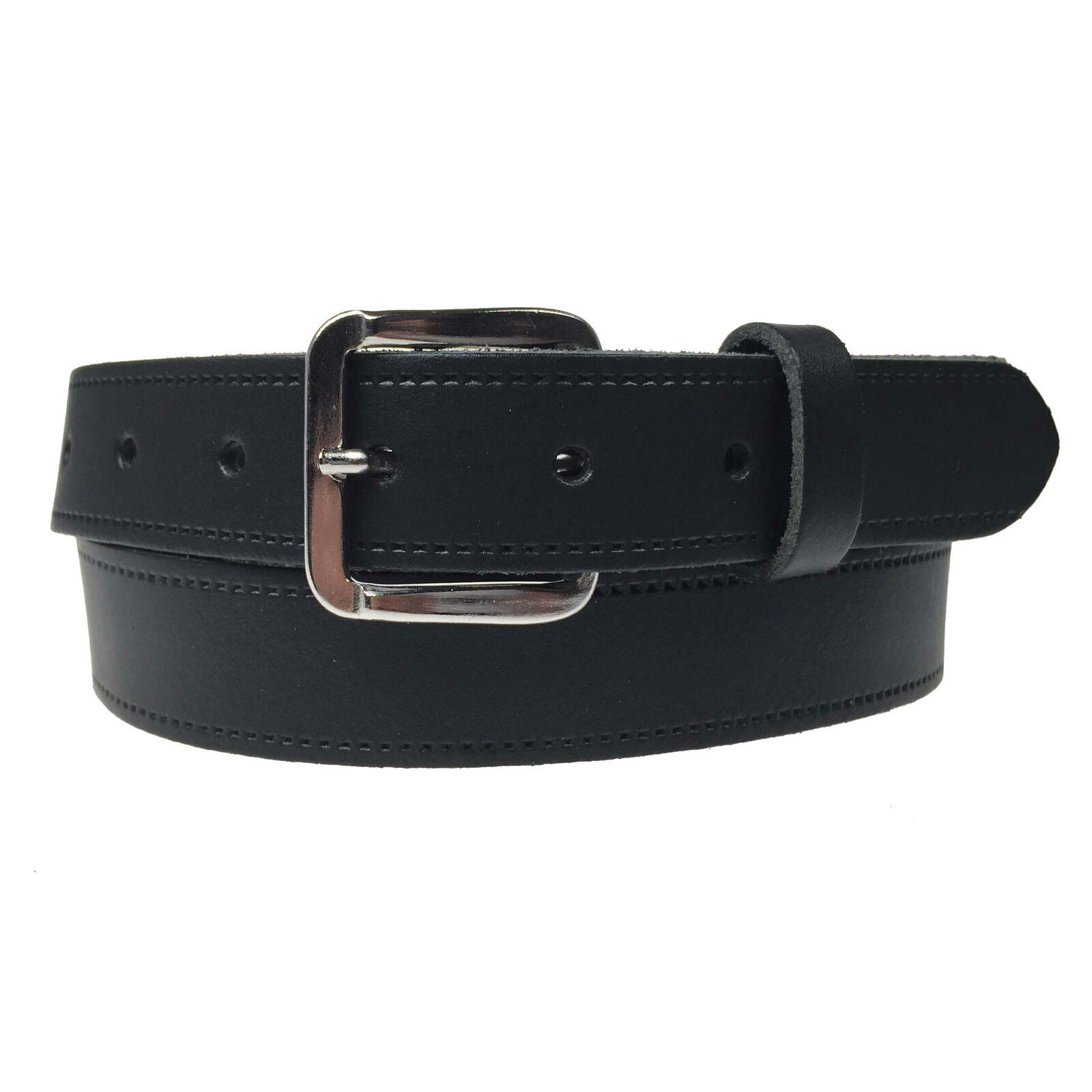 1.25" (30mm) Black Leather Belt Silver Buckle