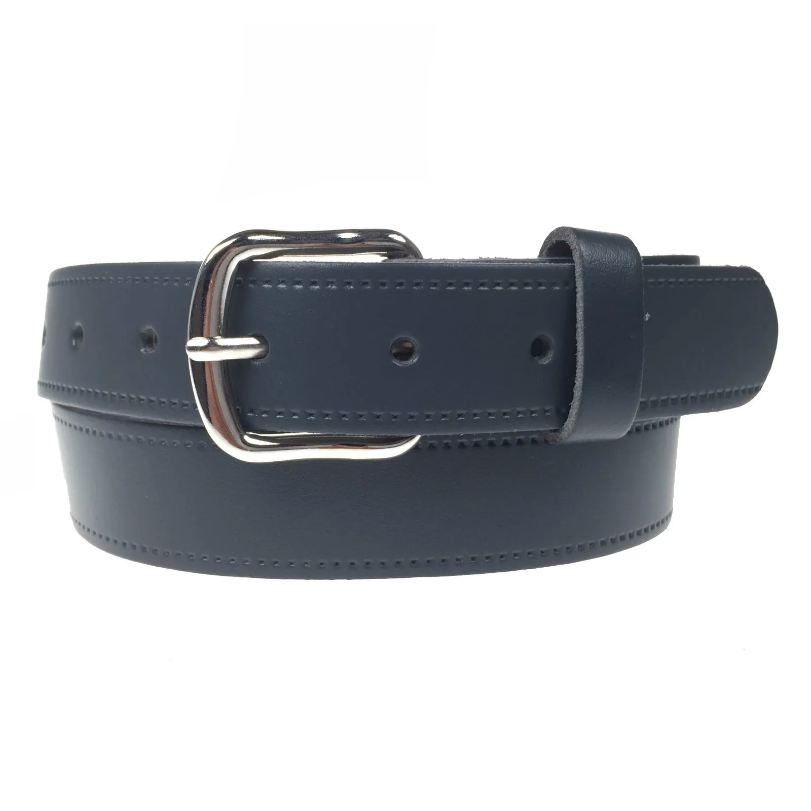 1.25" (30mm) Navy Leather Belt Curved Silver Buckle