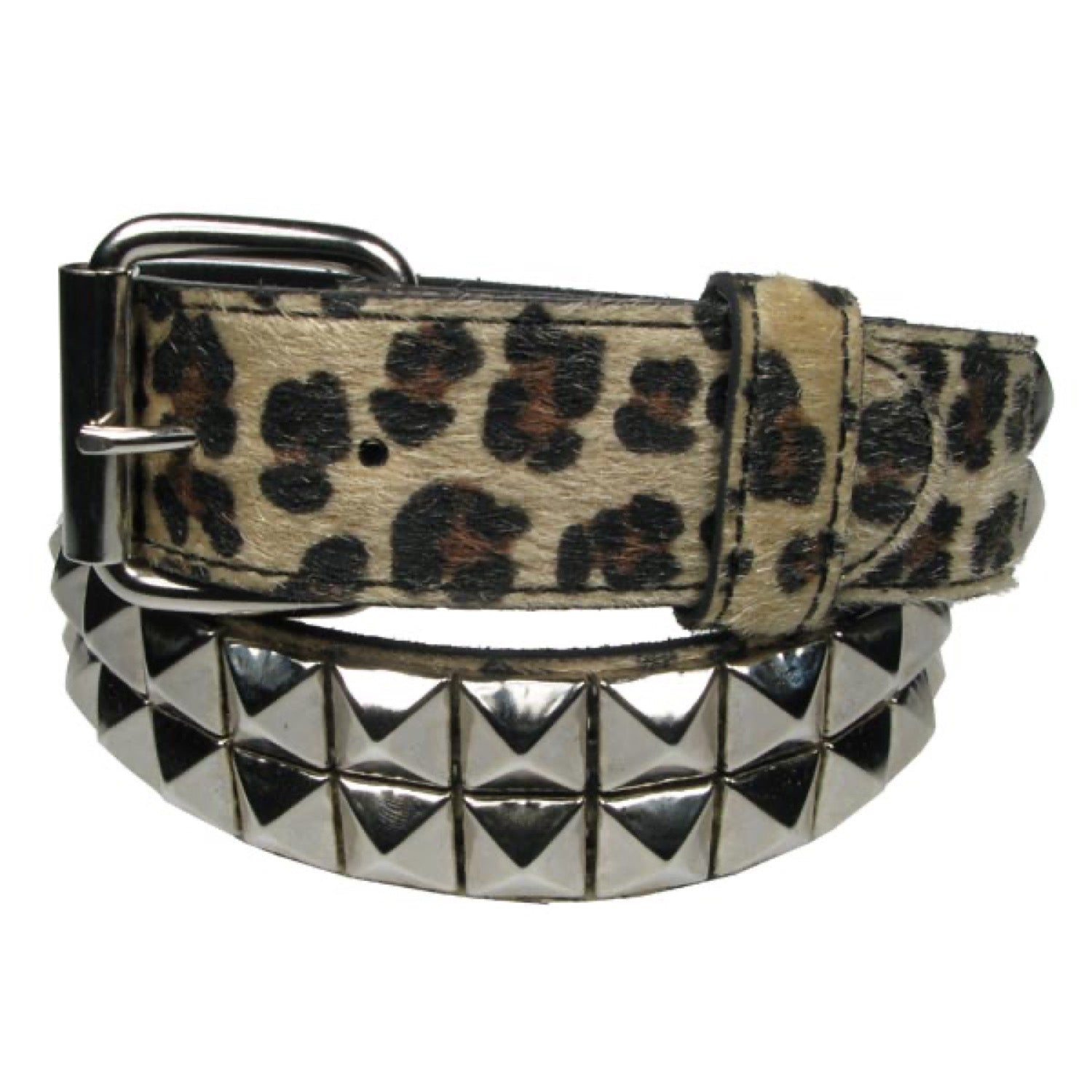 2 ROW PYRAMID BEIGE LEOPARD 38MM STUDDED BELT