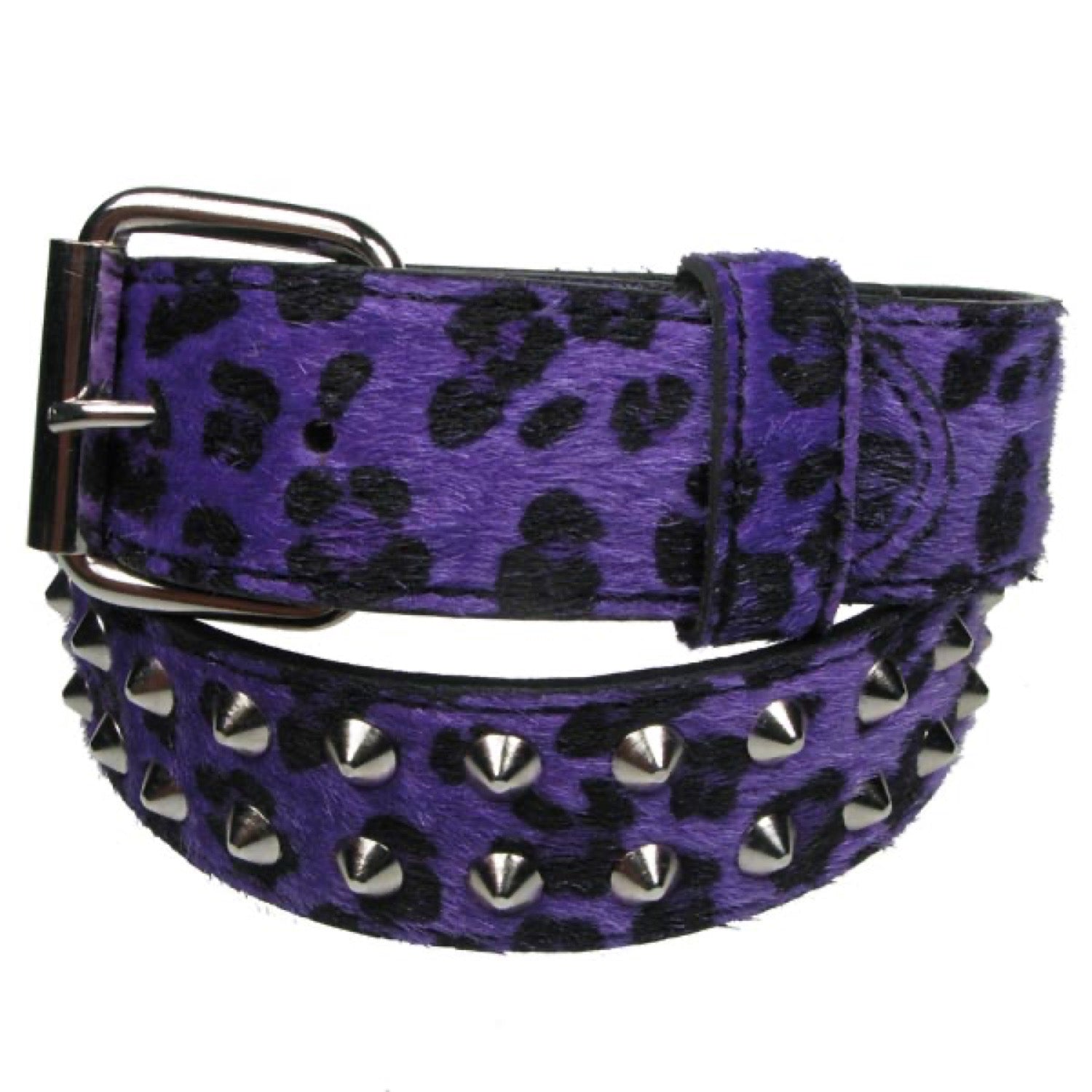 2 ROW CONICAL PURPLE LEOPARD 38MM STUDDED BELT