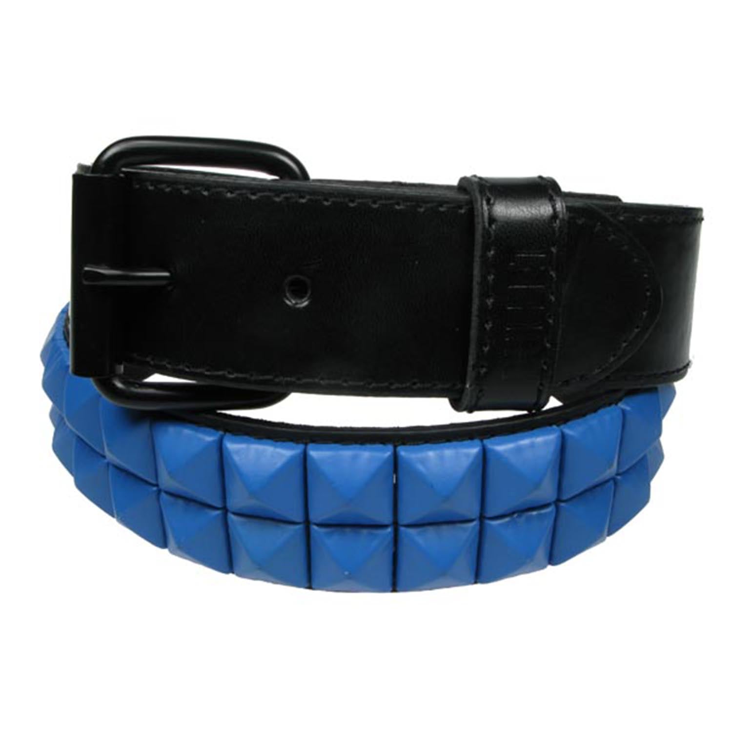 2 ROW BLUE PYRAMID BELT 38MM STUDDED BELT