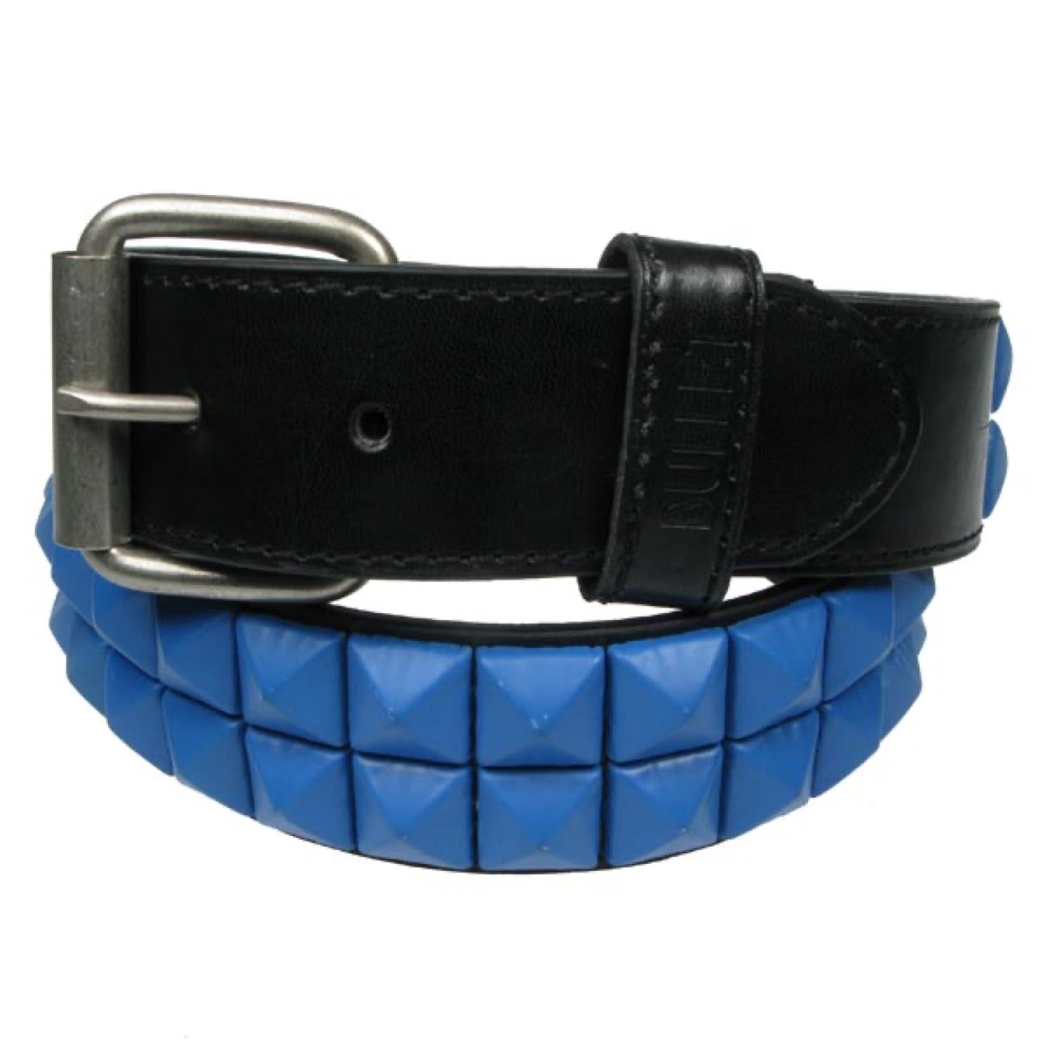 2 ROW BLUE PYRAMID BELT 38MM STUDDED BELT