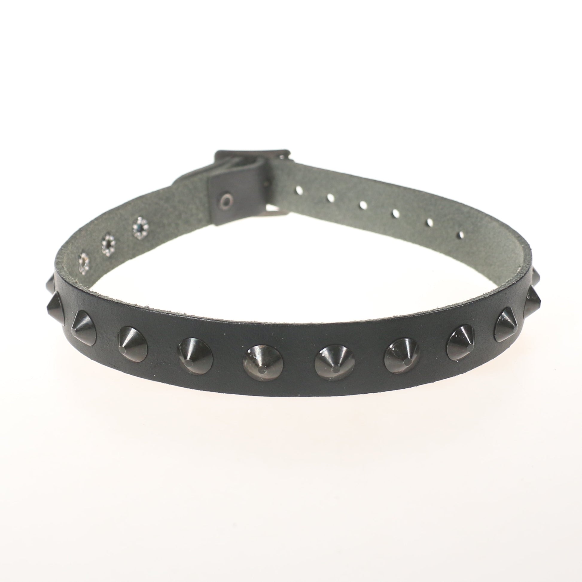 NB001-BLK 1 Row Black Conical Leather Choker