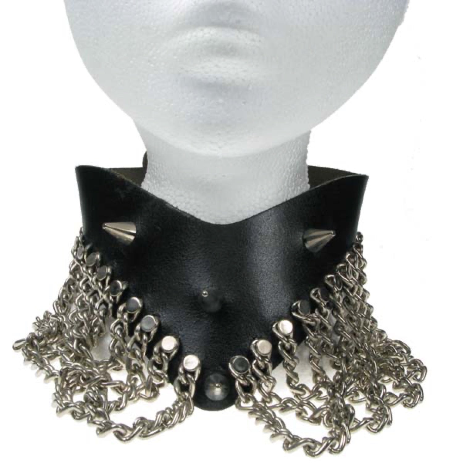 NB008 Chain and Cone Spike V Neck Leather Choker