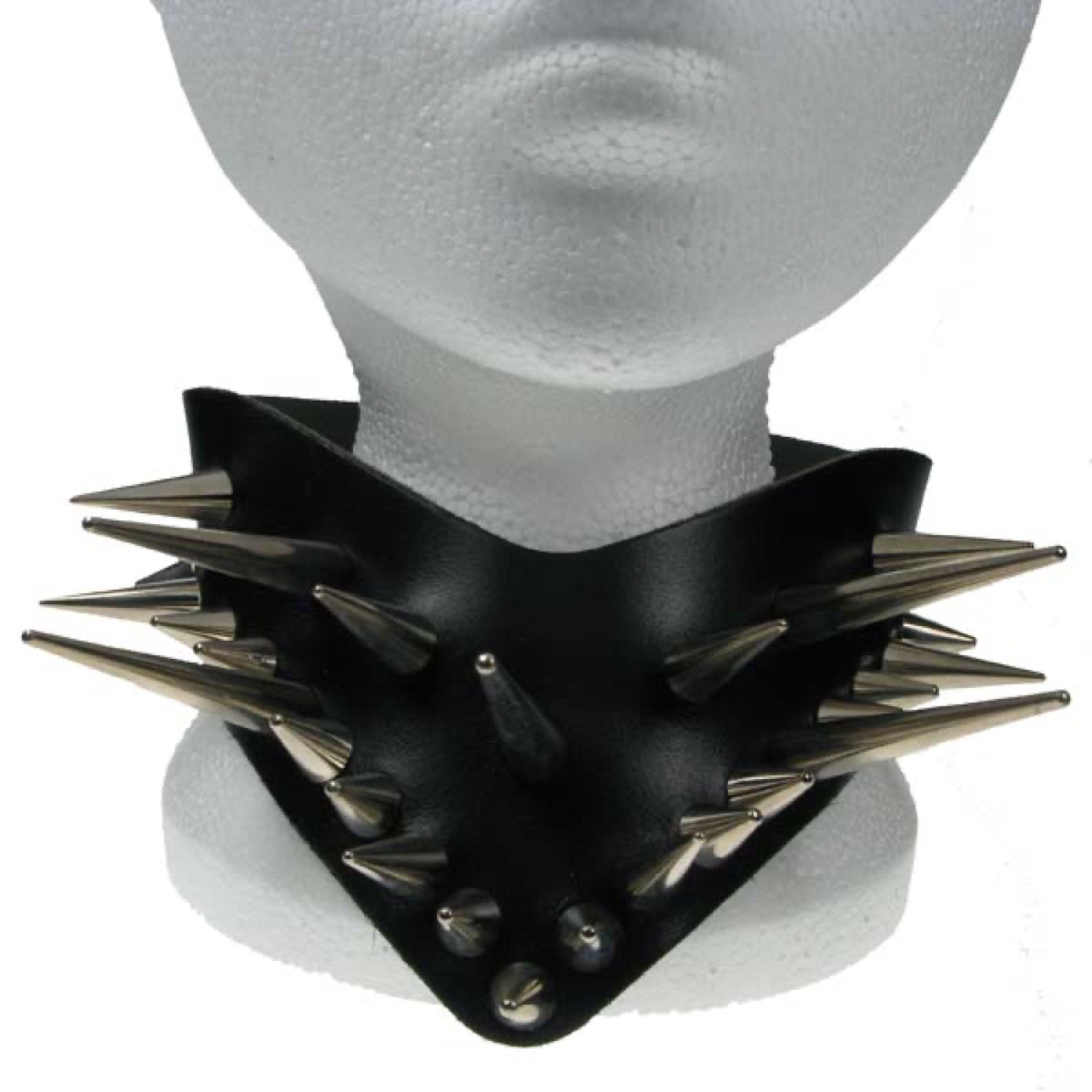 NB013 Mixed Cone V Neck Spike Leather Choker - Real Leather - Made in England
