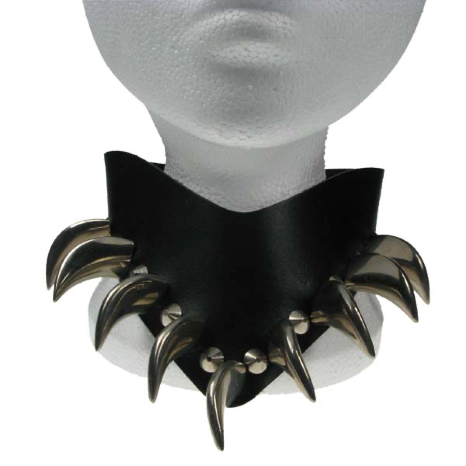 NB024 Conical & Saber Tooth Mixed V Neck Leather Choker