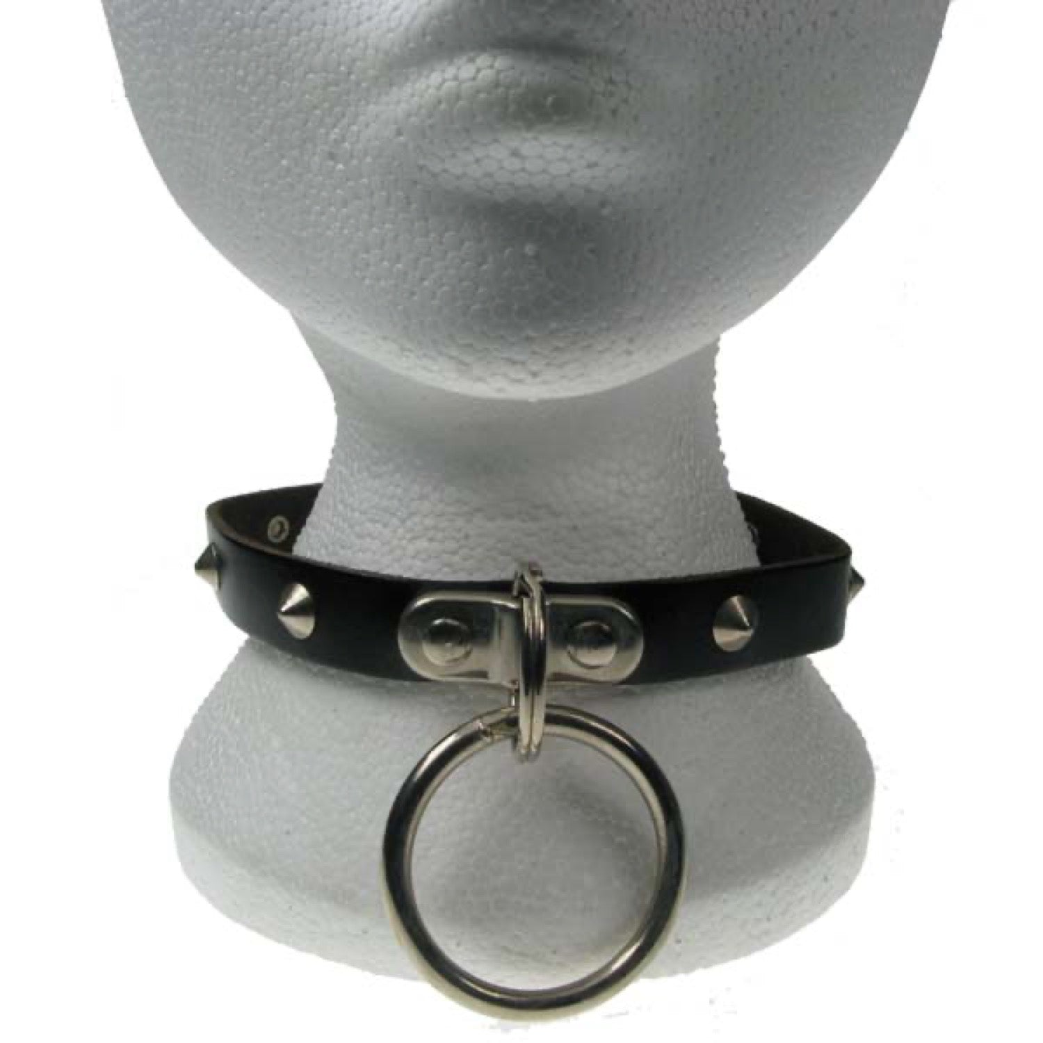 NB057 1 Row Conical, Handle Plate and Large Ring Leather Choker