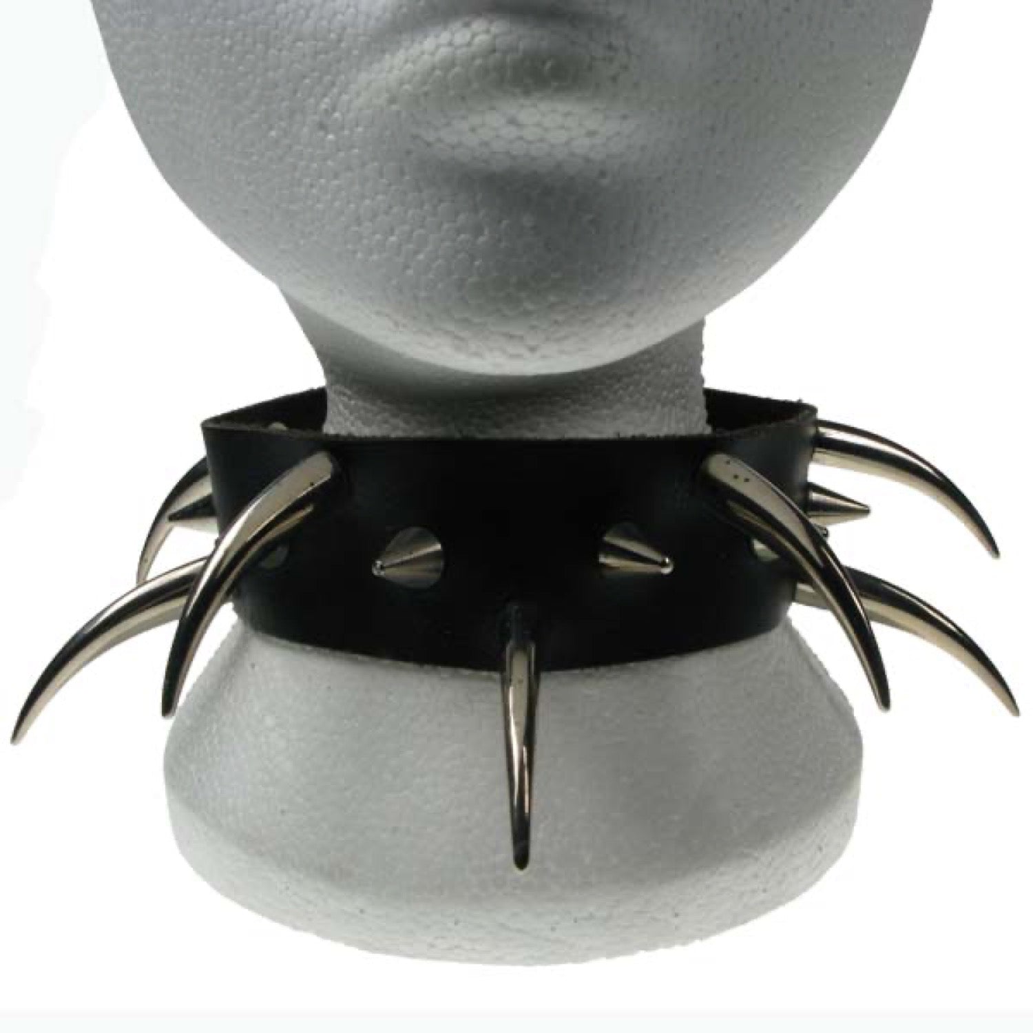 NB110 2 Row Large Tooth (on edge) and Cone Spike in middle Leather Choker - Real Leather - Made in England