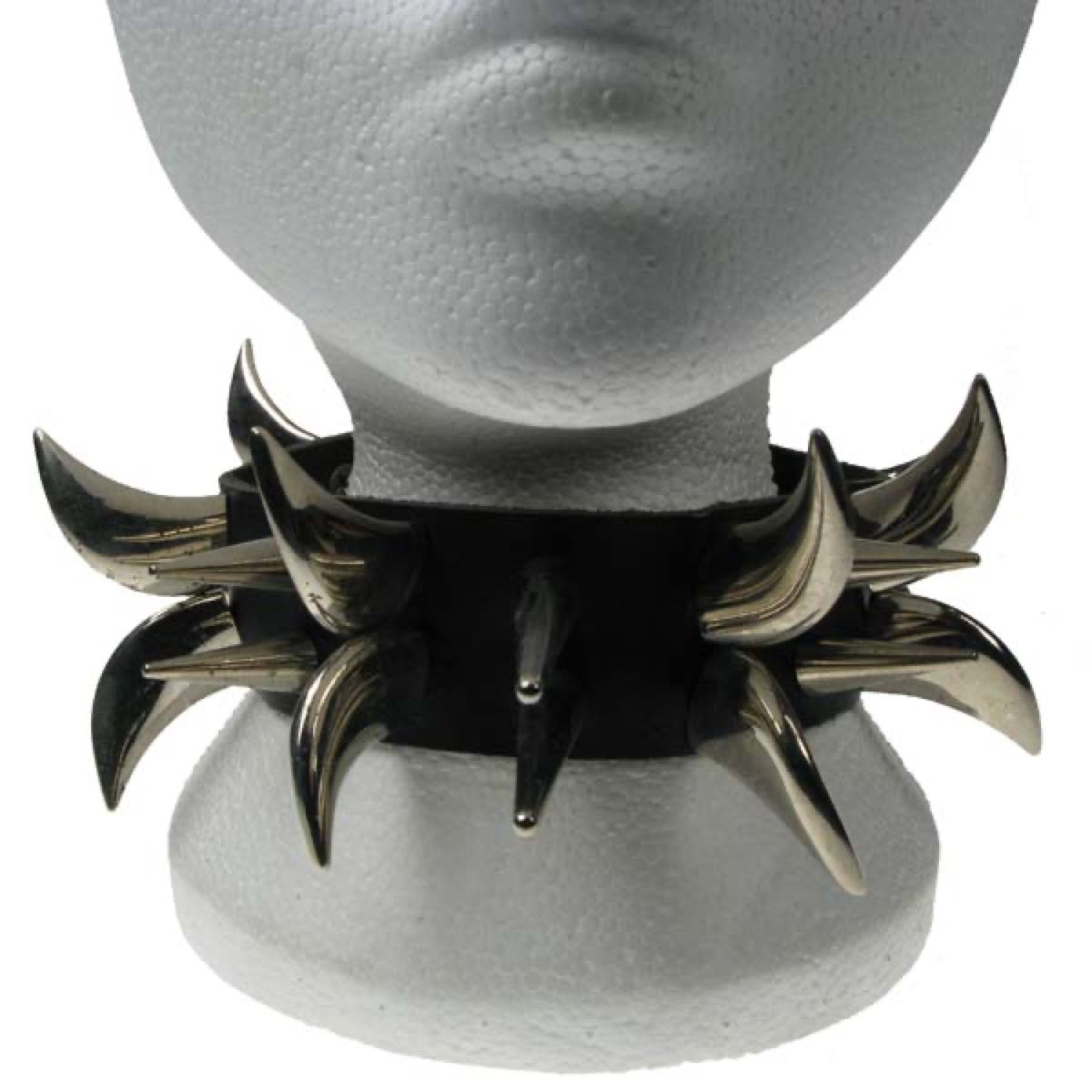 NB115 2 Row Saber Tooth and Medium Cone Spike Leather Choker - Real Leather - Made in England