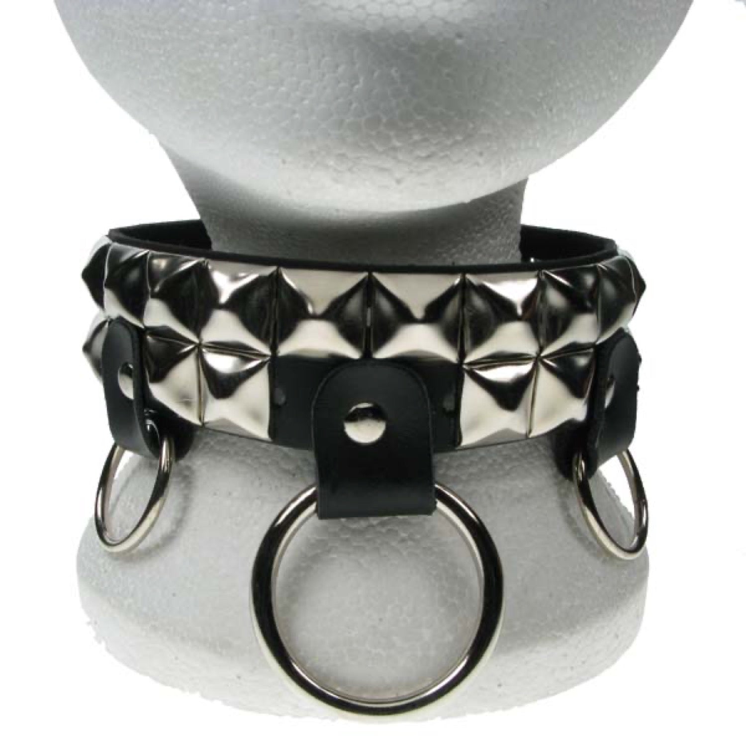 NB128 2 Row Pyramid & Medium and Large Rings Leather Choker - Real Leather - Made in England