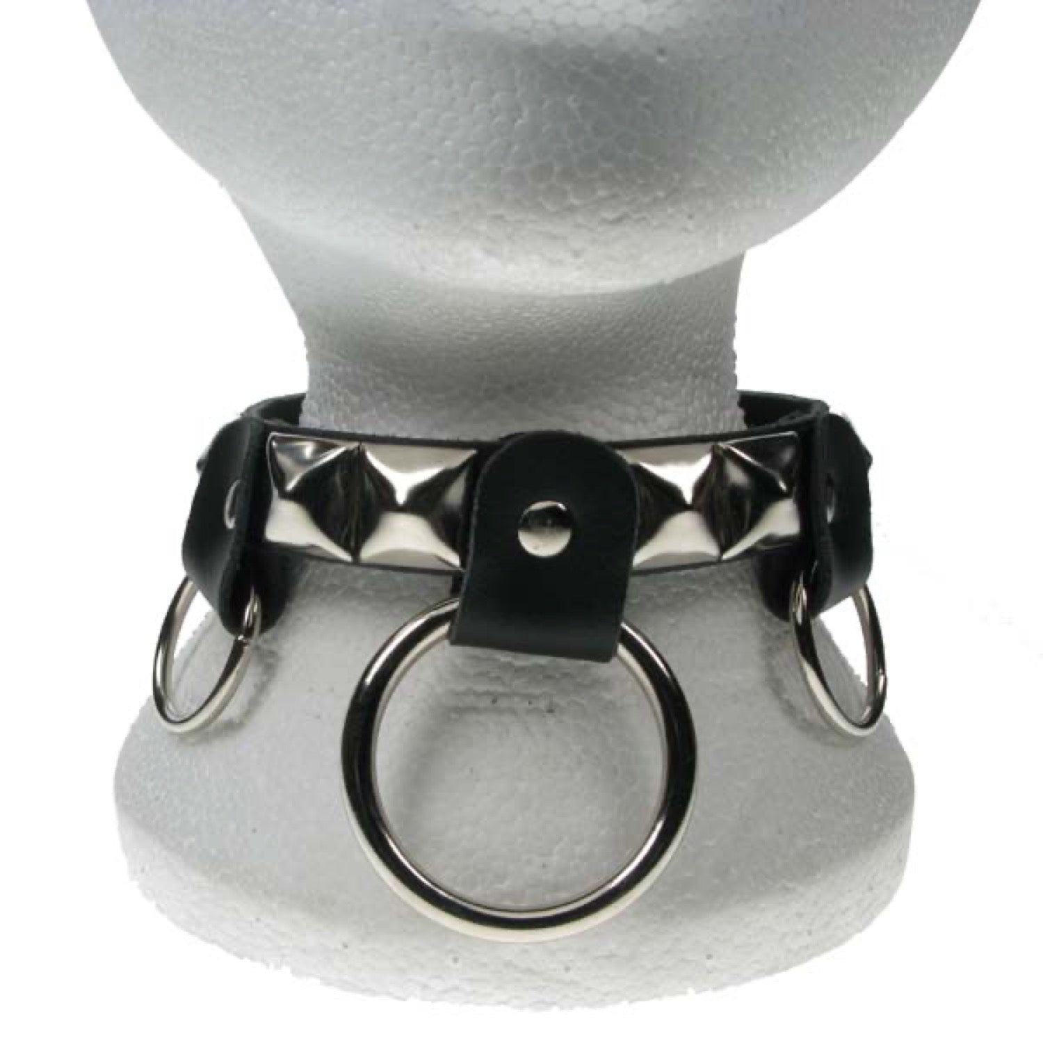 NB129 1 Row Pyramid & Medium and Large Rings Leather Choker - Real Leather - Made in England