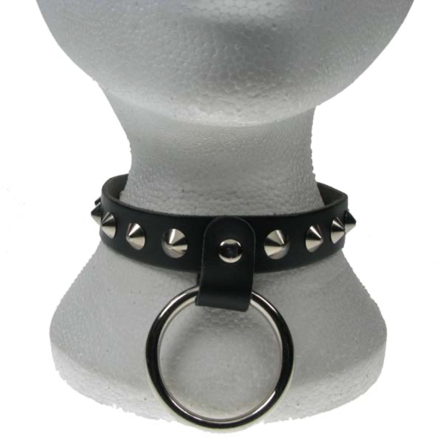 NB130 1 Row Conical and Medium Ring Leather Choker - Real Leather - Made in England