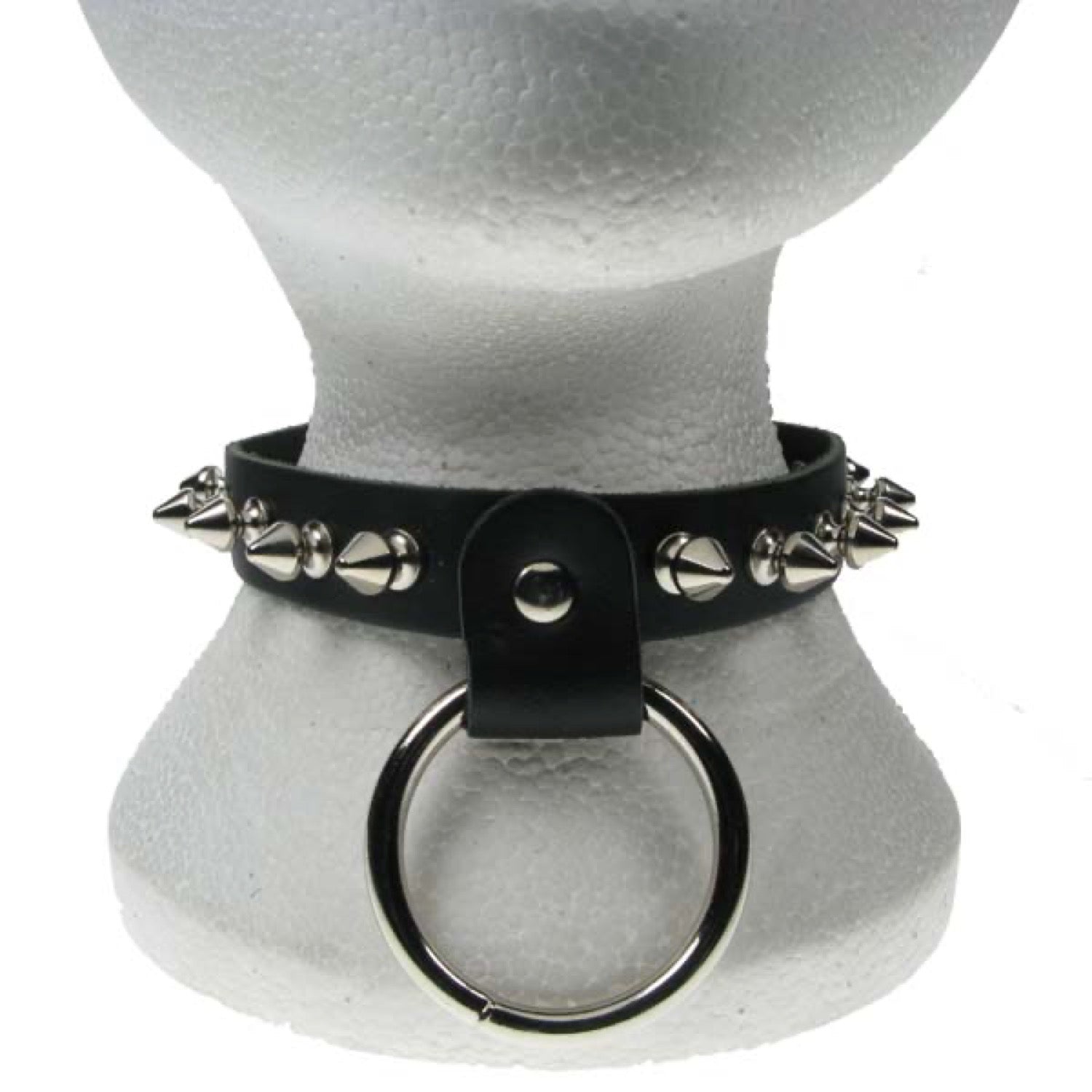 NB136 1 Row Spike and Large Ring Leather Choker - Real Leather - Made in England