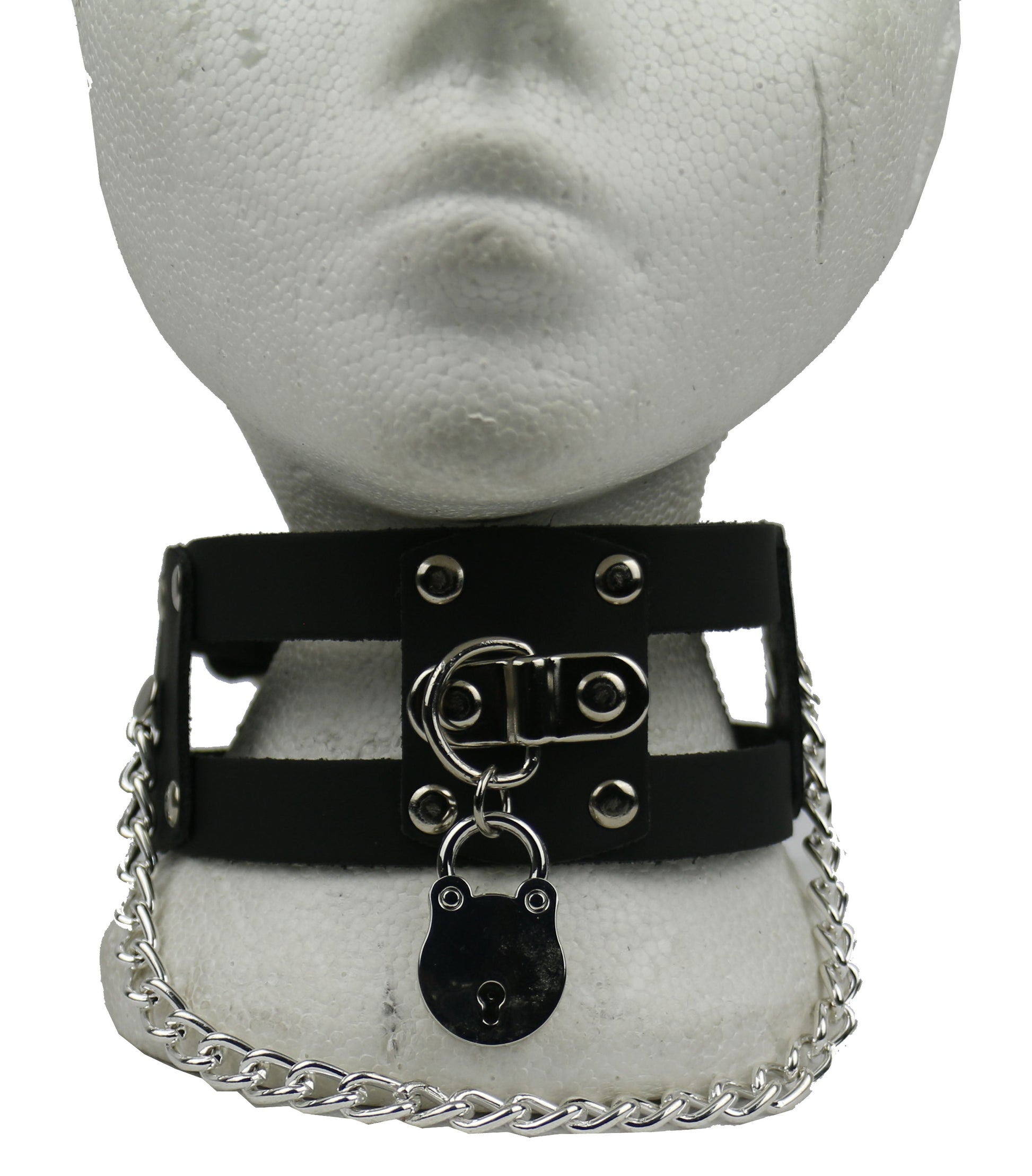 NB292 Double 1 Row w/Riveted Leather Pieces Handle Plate w/Padlock and Hanging Chain Leather Choker