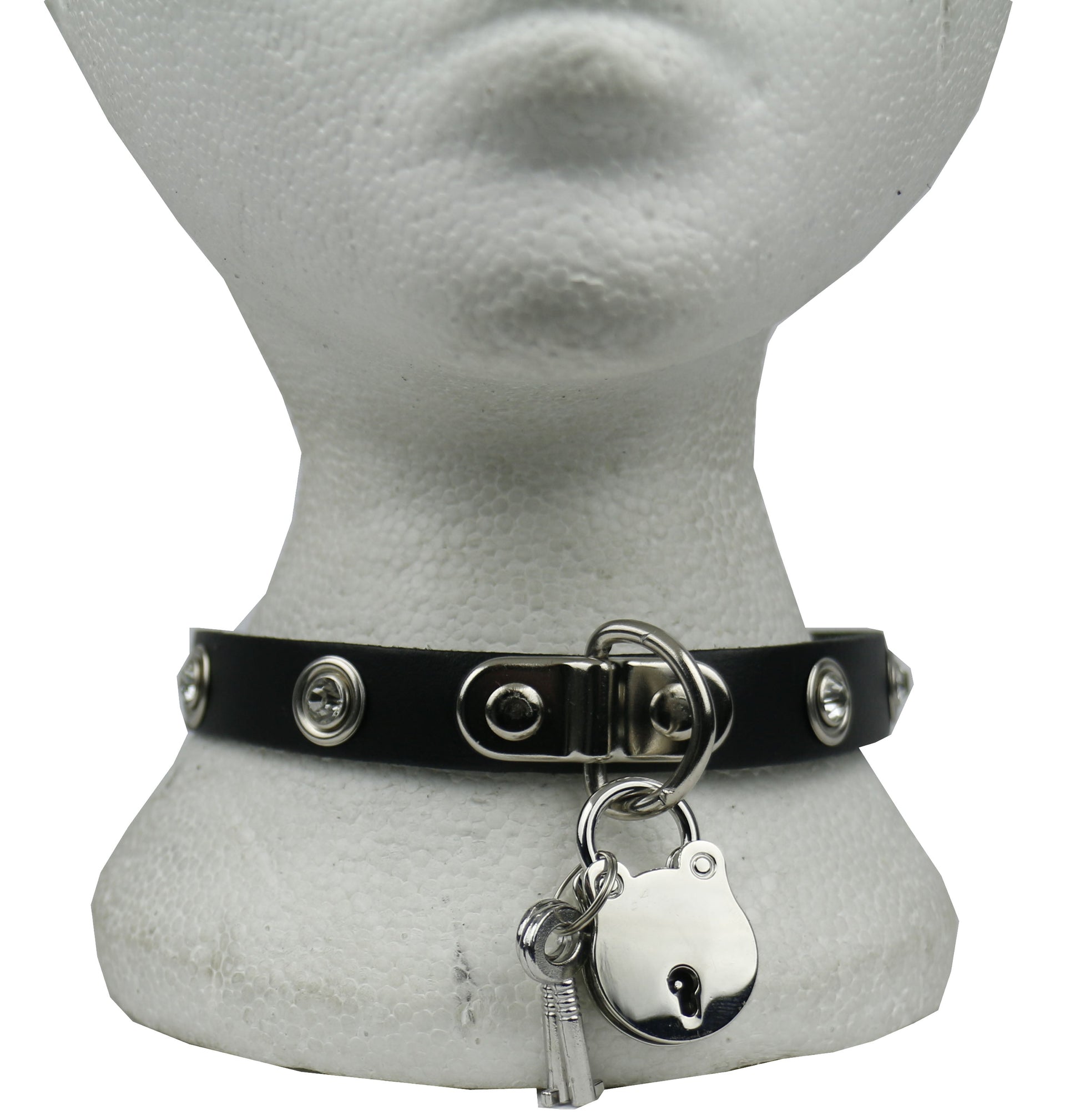 NB303 1 Row Clear Diamonte with Handle Plate and Padlock Leather Choker - Real Leather - Made in England