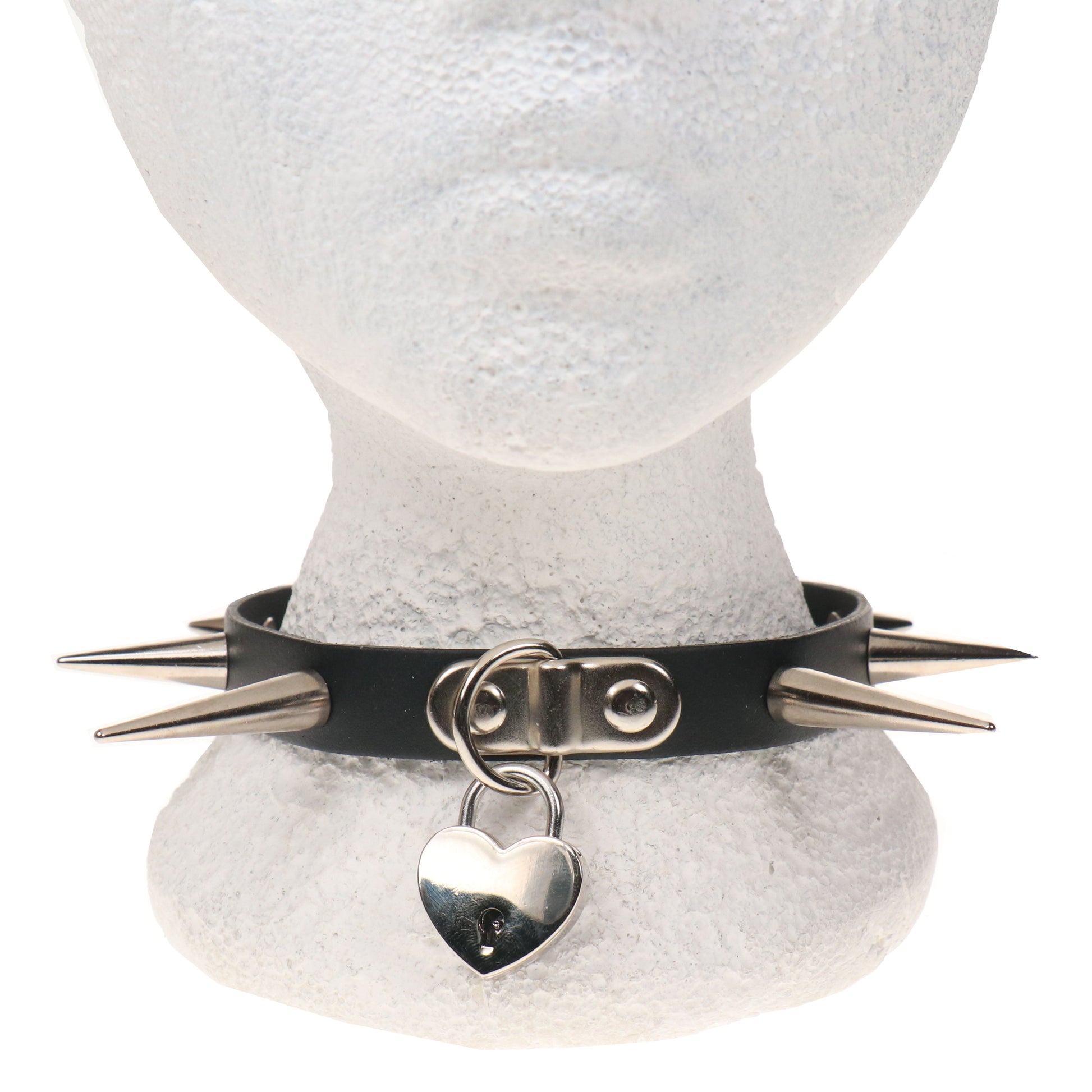 NB327 1 ROW SMALL, MEDIUM AND LARGE CONE SPIKE AND SMALL HEART PADLOCK Leather Choker