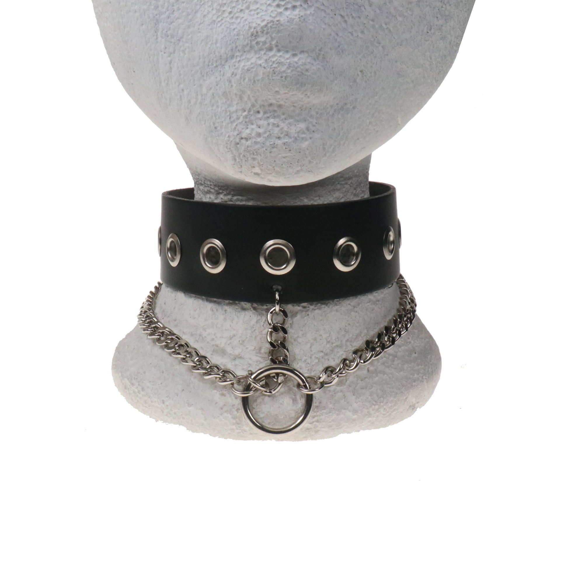 NB339 2 ROW WIDTH 1 ROW EYELET W/HANGING RING AND CHAINS Leather Choker