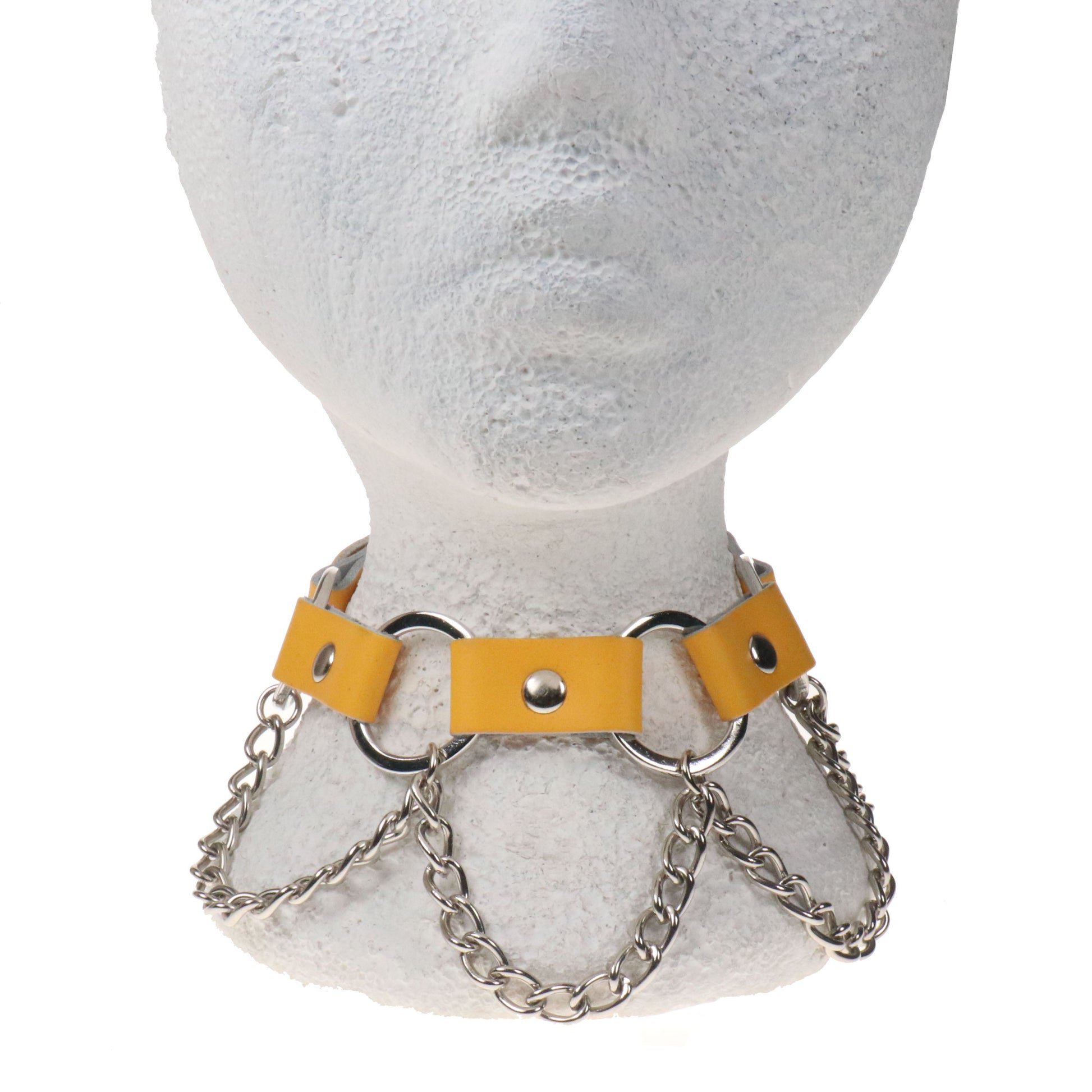 NB344 1 ROW WITH CURVED RINGS AND CHAINS Leather Choker