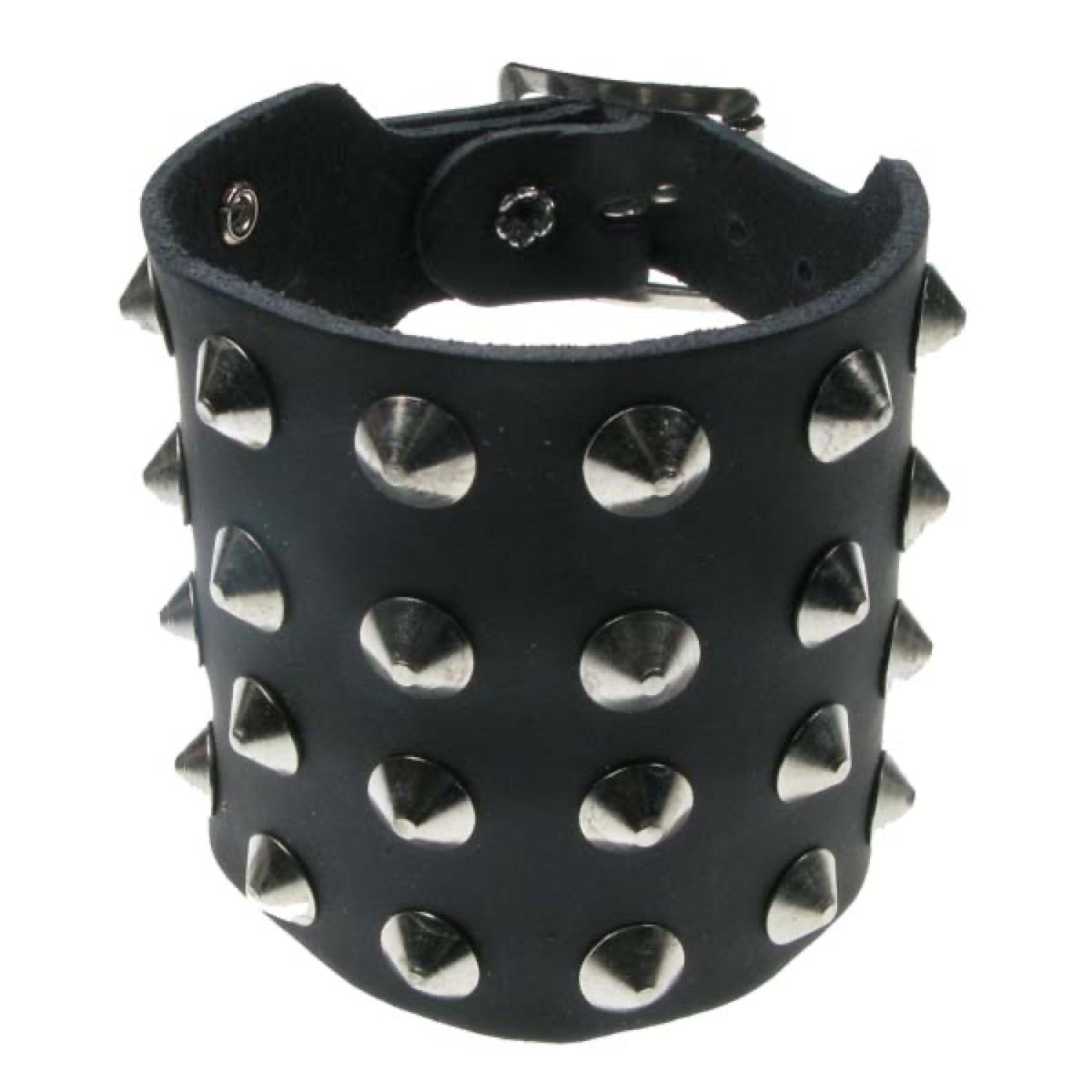 4 Row Conical Leather Wristband - Black