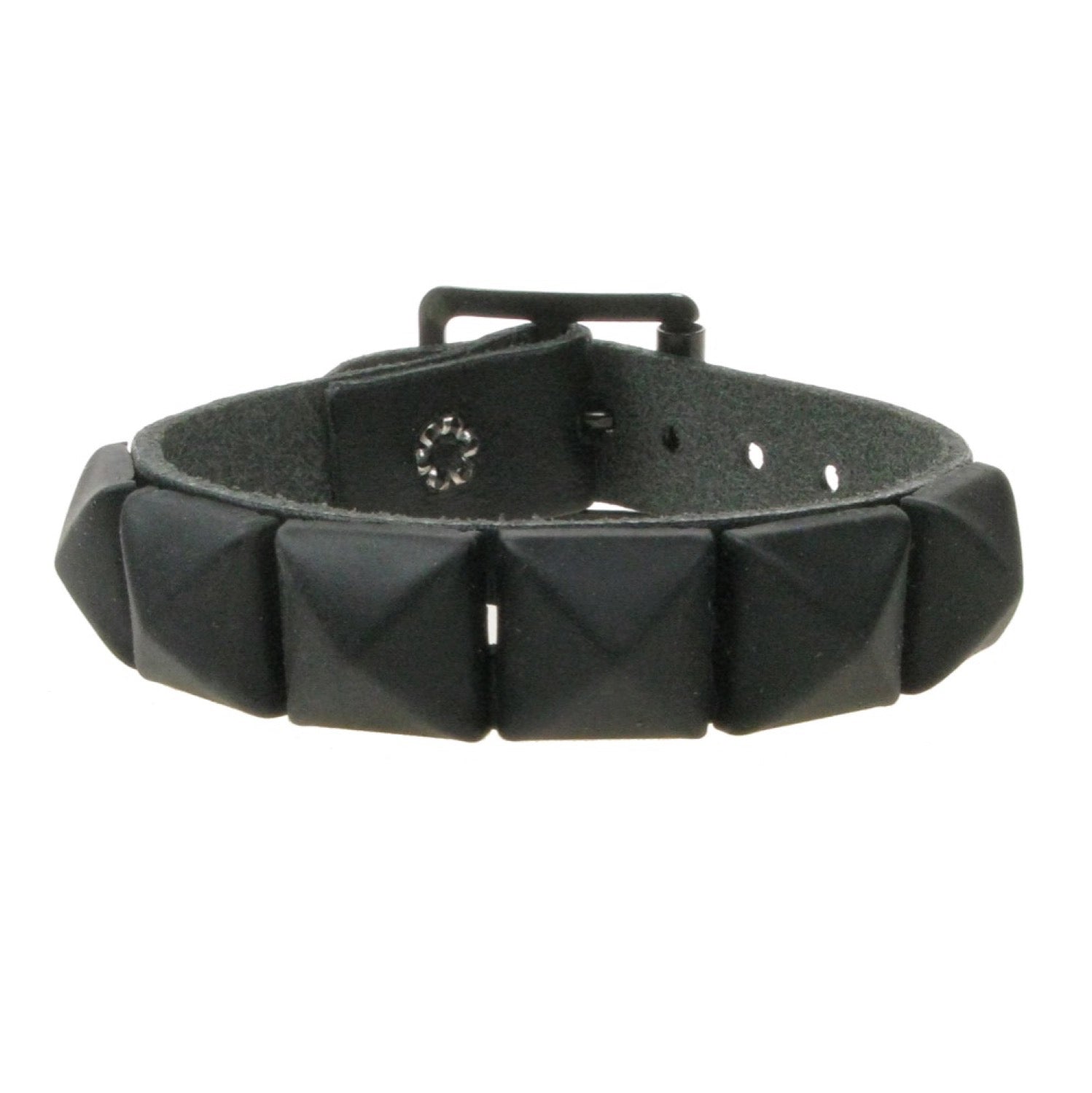1 ROW RUBBER BLACK PYRAMID LEATHER WRISTBAND - BLACK
