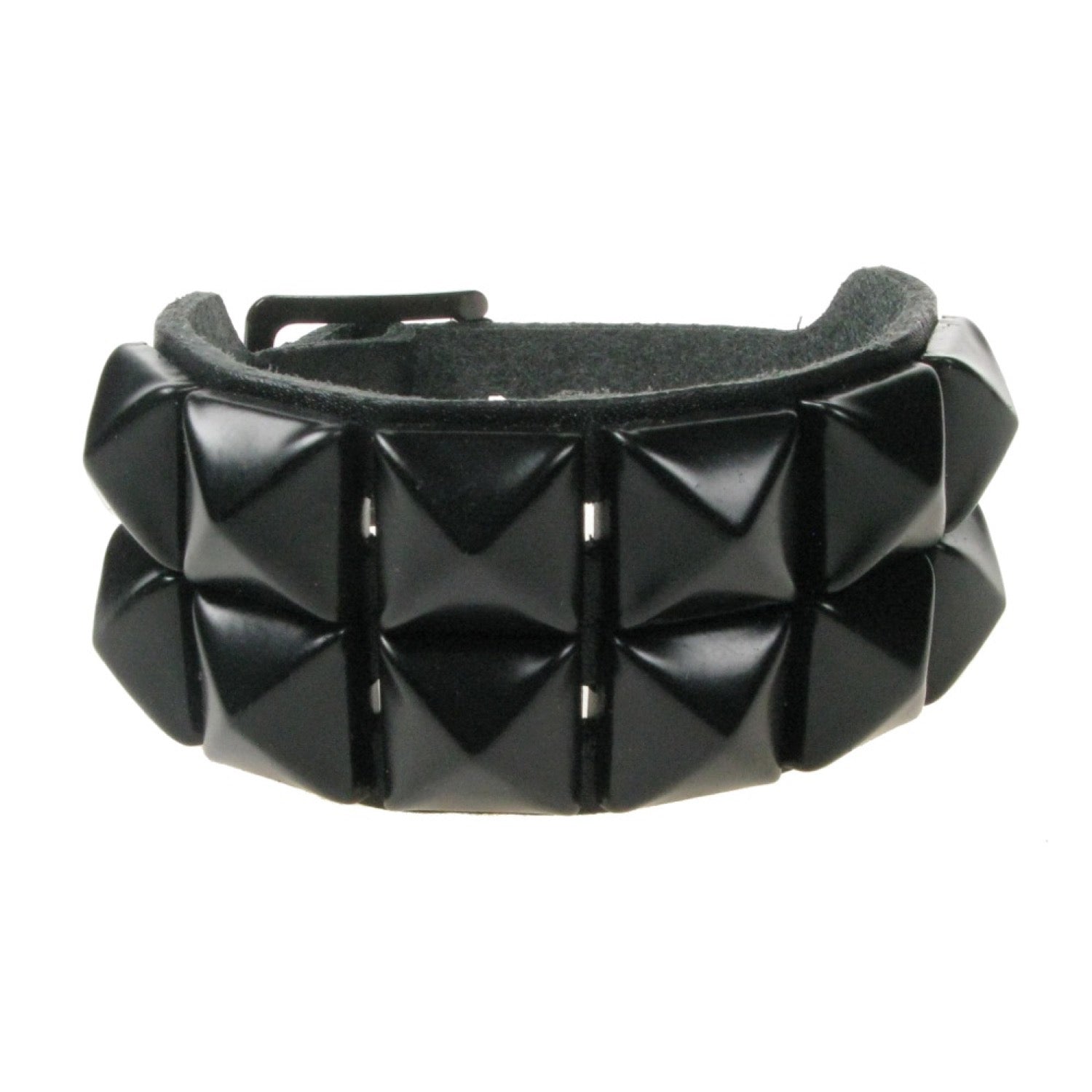 2 ROW BLACK PYRAMID LEATHER WRISTBAND - BLACK