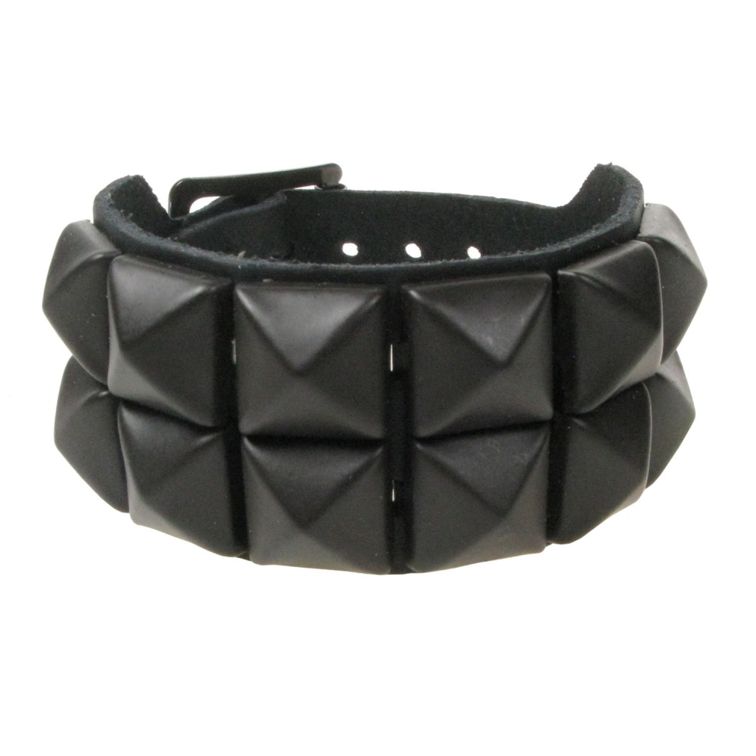 2 ROW MATT BLACK PYRAMID LEATHER WRISTBAND - BLACK