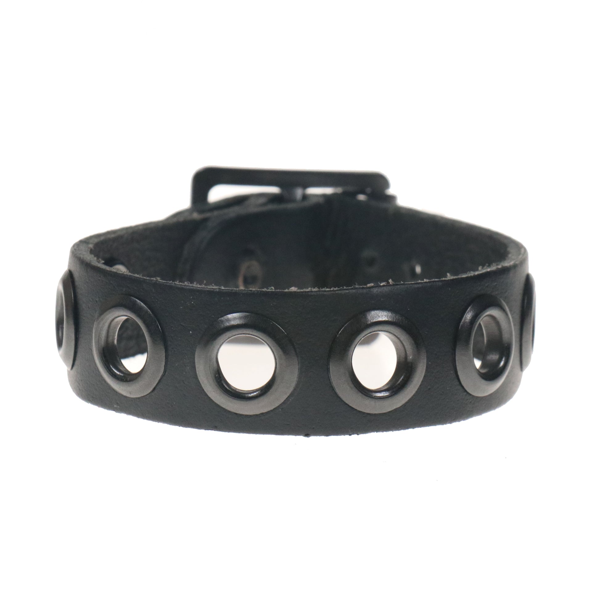 WB025 1 Row Black Eyelet Leather Wristband - Black