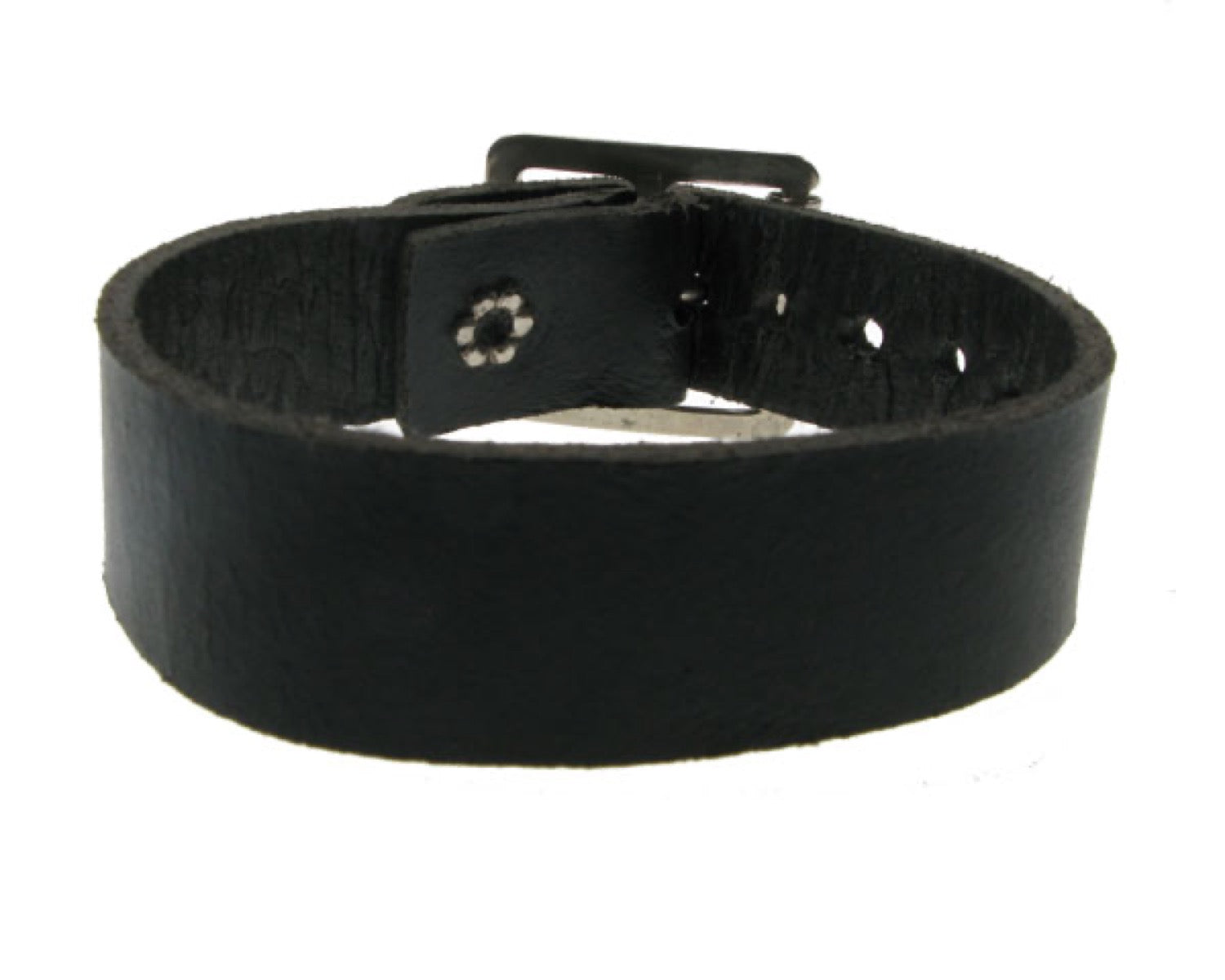 WB028 1 Row Plain Leather Wristband - Black
