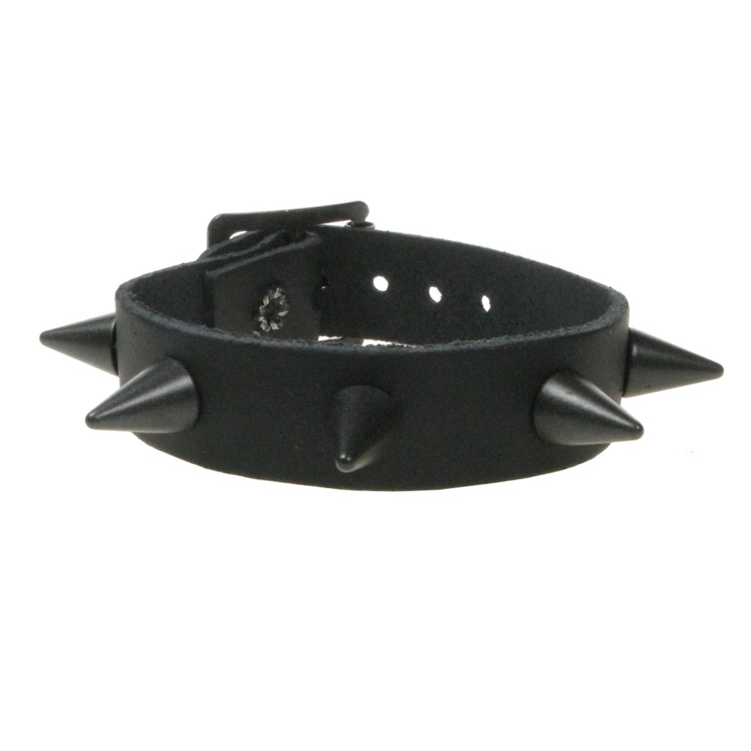 WB064c 1 Row Black Small Cone Leather Wristband - Black