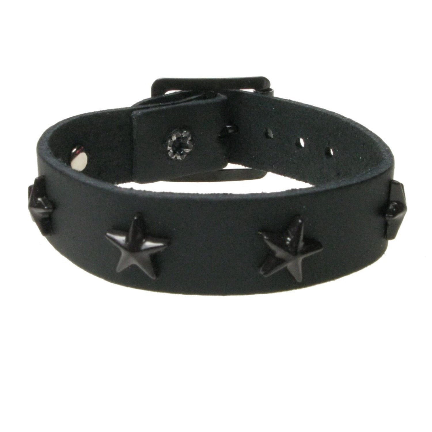 1 ROW STAR FITTING - BLACK Leather Wristband