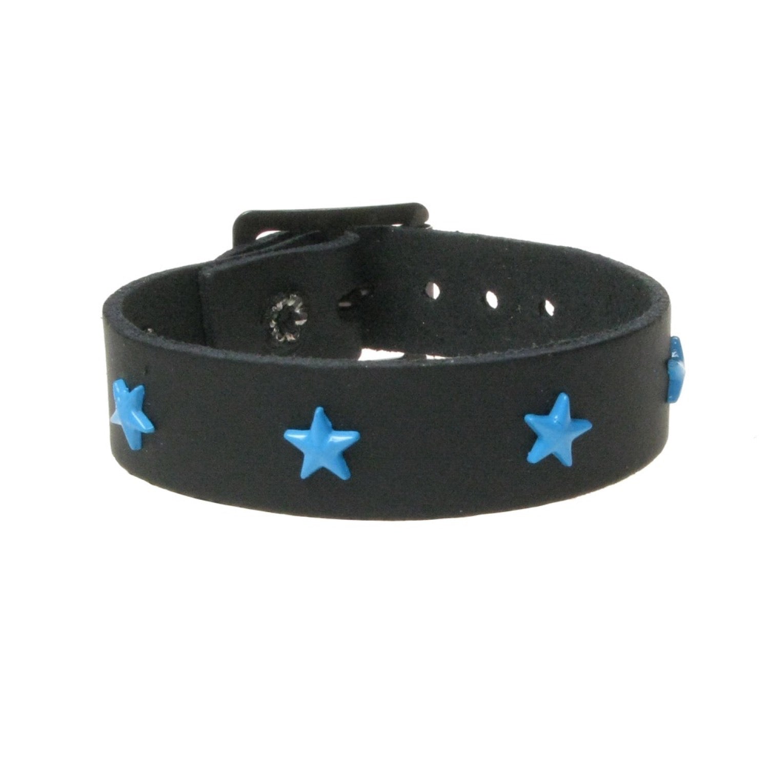 1 ROW SMALL STAR FITTING BLUE - BLACK Leather Wristband
